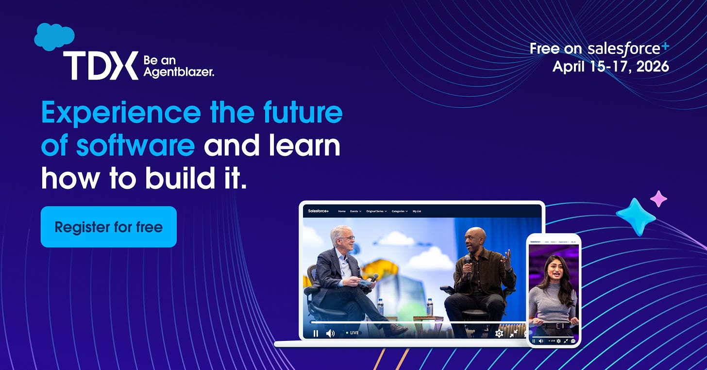 Agentic AI is changing the game and Agentforce is leading the way. Stream TDX to join dozens of sessions and virtual hands-on trainings that explore the latest innovations across Agentforce, Data 360, the core platform, vibe coding, Slack, and more. All free on Salesforce+.